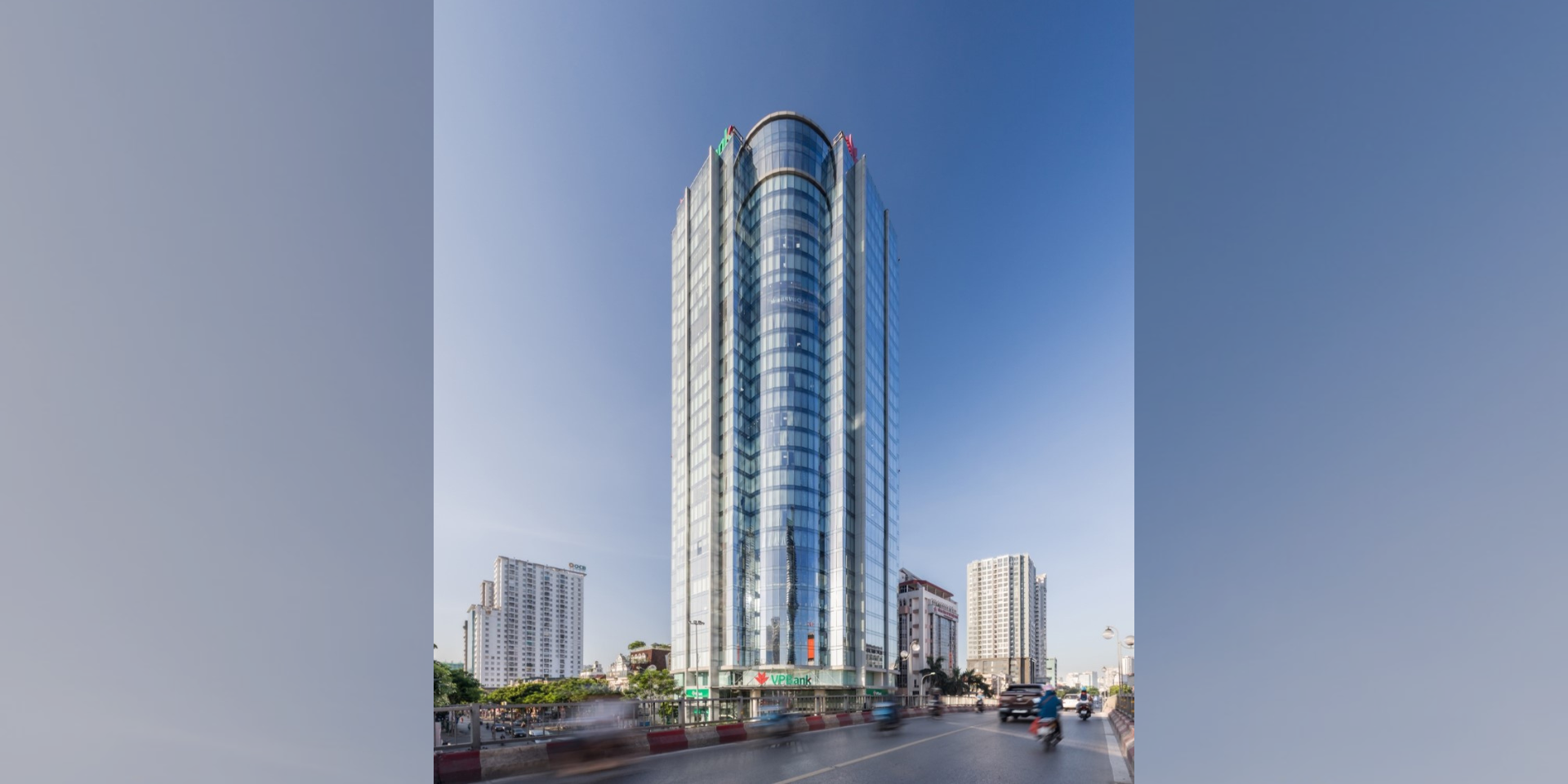 Situated at a strategically important intersection, Lang Ha and Thai Ha, on a land area of approximately 2,770 square meters, the design adheres to the building setback regulations, with a 10-meter setback from the road for Lang Ha Street and a 6-meter setback for Thai Ha Street. Furthermore, a 5-meter wide fire access lane is maintained for access to the rear of the building. The project includes two main vehicular entrances to the basement, as well as two restricted gates (with instructions) for passenger drop-off at the main entrance of the office tower and a separate entrance for the bank area.